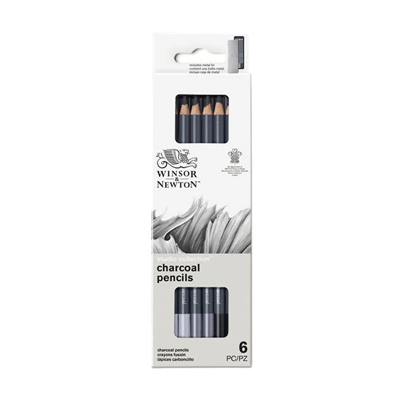 Crayons graphite et fusain de haute qualité, parfaits pour réaliser des croquis spontanés et capturer le mouvement !Les crayons graphite et fusain de la gamme Studio signée Winsor & Newton se mélangent facilement pour créer des ombres saisissantes, ce qui les rend idéaux pour créer des dessins et des natures mortes sur le vif, à la maison ou dans votre studio.La mine de ces crayons contient des liants de haute qualité, de sorte qu'ils ne se cassent pas facilement sous pression, même s'ils sont échappés. Ils sont disponibles dans une gamme de niveaux de dureté, parfaits pour capturer des tons sombres ou délicats, ou pour estomper les ombres et les détails fins.Ils sont fabriqués à partir de bois de cèdre durable et facile à aiguiser.Comprend : 2 x fusains tendres2 x fusains moyens2 x fusains durs