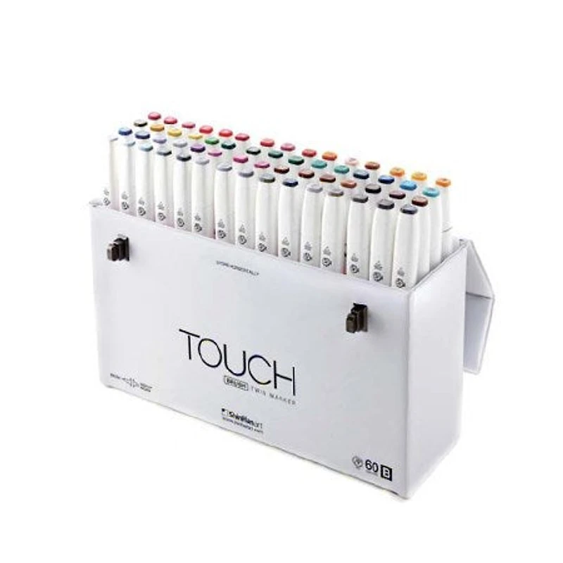 Les marqueurs à pointe pinceau Touch signés ShinHan comportent une pointe pinceau et une pointe biseautée moyenne, permettant ainsi de réaliser un large éventail de techniques. La conception innovante et durable des pointes garantit qu'elles resteront fermes au fil du temps. Un débit d'encre et un temps de séchage optimal permettent de réaliser facilement des œuvres très détaillées.  Les marqueurs à pointe pinceau Touch contiennent une encre à base d'alcool qui ne dissout pas le toner d'encre imprimé, ce qui permet de réaliser des dessins inodores et colorés sur des supports imprimés. Un excellent outil créatif pour les illustrateurs, les mangakas, les dessinateurs, les designers et les amateurs !*L'encre rechargeable et les plumes de rechange contribuent à la longévité des marqueurs à pointe pinceau Touch. Certifié ACMI.Cet ensemble contient 60 marqueurs dans une boîte en plastique solide :  R1, R3, R4, R15, R8, R13, R16, R22, YR25, YR24, YR33, YR31, YR32, Y44, Y37, Y45, Y42, G55, G43, G58, BG57, BG50, BG53, BG52, B68, B67, B66, B64, B62, PB70, PB72, PB75, P82, P84, P88, RP86, RP17, BR93, BR98, BR96, BR95, BR102, BR99, BR100, BR104, GG1, GG3, GG5, GG7, GG9, CG0.5, CG2, CG4, CG6, CG8, WG0.5, WG2, WG4, WG6, WG8