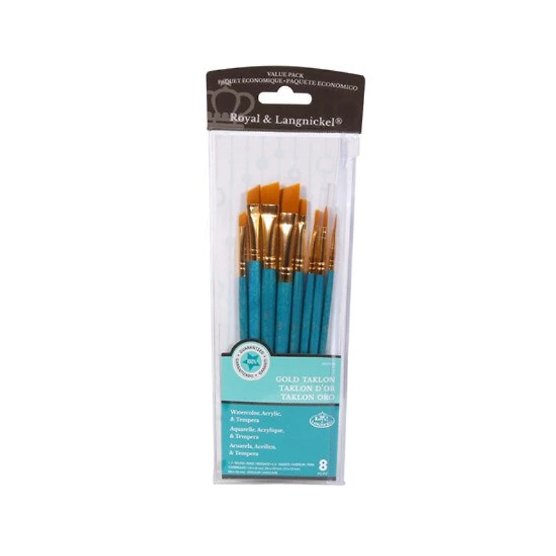 Cet ensemble compte 8 pinceaux polyvalents à manche court. Dotés d’une virole en aluminium de qualité, ces pinceaux sont destinés à l’huile, l’acrylique et l’aquarelle.Comprend : deux pinceaux ronds 1 et 3, deux pinceaux à ombrage 4 et 6, quatre pinceaux biseautés 1/4 po, 3/8 po, 1/2 po et 5/8 po & un étui en plastique réutilisable Zip N’ CloseTMEntretien : garant de leur durabilité et de leur condition, le nettoyage des pinceaux est essentiel. Toujours nettoyer les pinceaux avant que la peinture ne sèche. L’utilisation d’un nettoyant hydratant pour pinceaux après un traitement au Taltine ou au savon évite aux soies de sécher et contribue au maintien de leur souplesse.Aquarelle : nettoyer à l’eau chaudeHuile : tremper le pinceau dans un solvant type Taltine. Nettoyer avec de l’eau chaude savonneuse et rincer à l’eau claire.Acrylique : nettoyer à l’eau chaude savonneuse et rincer à l’eau claire.