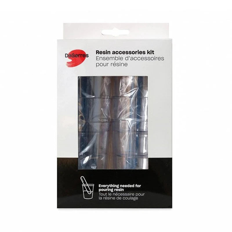 Appliquer de la résine sur une œuvre peut rapidement devenir une tâche salissante ! C'est pour cela que nous avons créé un kit soigneusement pensé, rempli d'essentiels pour compléter un projet de résine de A à Z. Lancez-vous en toute confiance !Ceci est un produit DeSerres (re)art avec emballage respectueux de l'environnement.Contient :- 6 verres gradués (230 ml, 8 oz)- 2 verres non gradués (230 ml, 8 oz)- 3 paires de gants en nitrite- 6 abaisses langue en bois- 1 couteau à peindre large en plastique