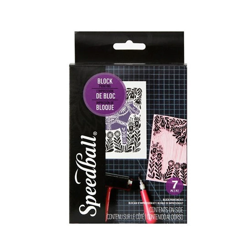 Que vous soyez un débutant ou un expert en impression de bloc, les kits Speedball proposent une sélection variée de matériaux qui sauront répondre à tous vos besoins créatifs. Le kit de départ contient tout le matériel nécessaire pour s’initier à l’impression de bloc. Comprend :- encre noire et hydrosoluble pour l'impression de bloc (1,25 oz)- une poignée lino (rouge) - couteaux lino no. 1, 2 et 5- un plateau en mousse pour l'encrage- un bloc lino de 4 x 6 po