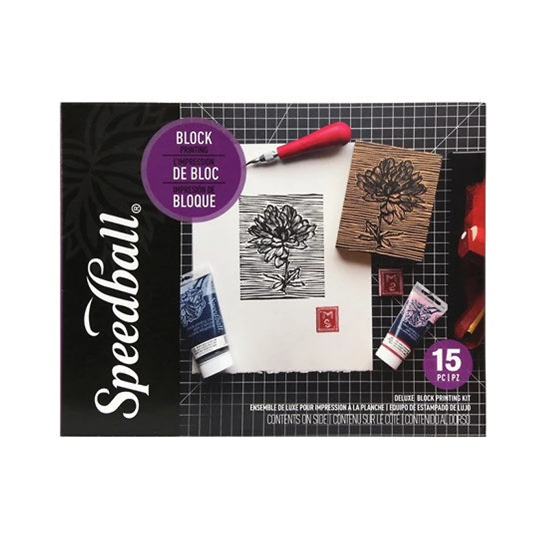 Ce kit de luxe est idéal pour les débutants ou les amateurs de linogravure. Un livret d'instructions comprenant conseils et idées vous guidera tout au long du processus d'impression. Réalisez de magnifiques motifs sur tissu ou papier. Comprend 4 encres à base d'huile, retardateur, bloc de linoléum, tampon Speedy, couteaux, un rouleau et plaque à encre.