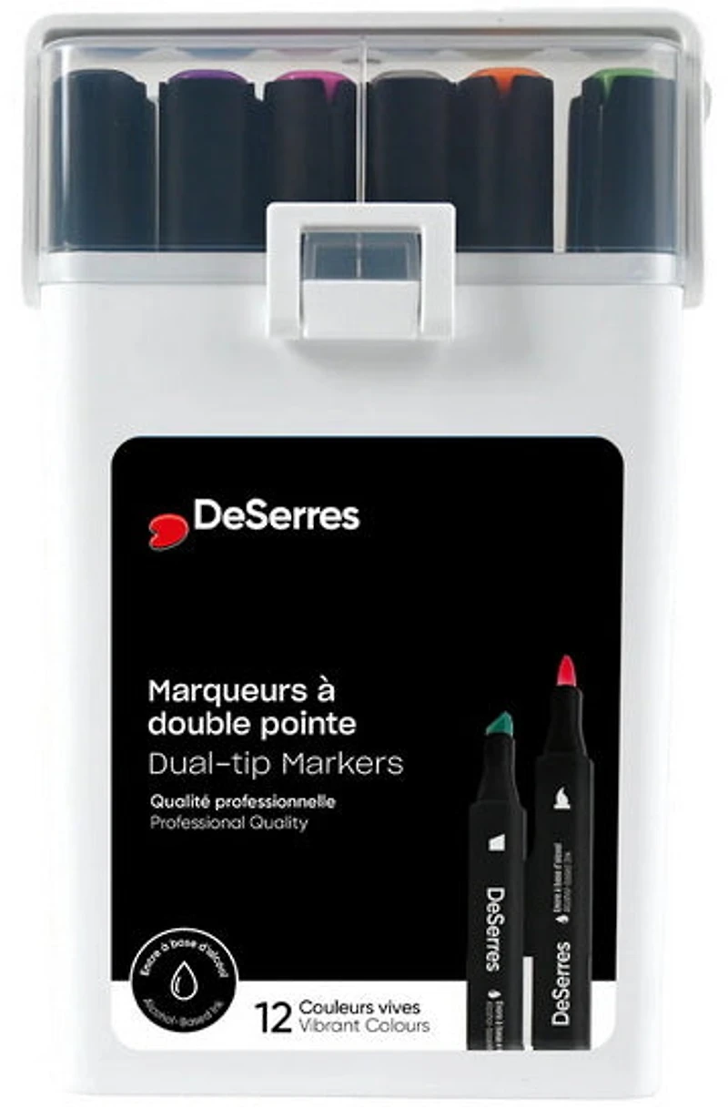 - 12 marqueurs double pointe : pinceau souple + biseautée.