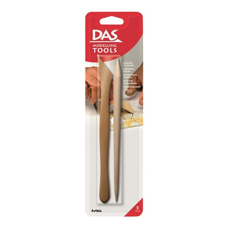Ensemble de 2 spatules en bois idéales pour le modelage. Le paquet inclut un outil à double extrémité pointu rond ainsi qu’un outil à angle plat. Utilisez ces outils en bois pour créer des détails, graver vos pièces ou enlever l'excédent de matière. Les spatules sont faciles à nettoyer et confortables à tenir. Longueur : 20 cm. Ne convient pas aux enfants de moins de 8 ans.