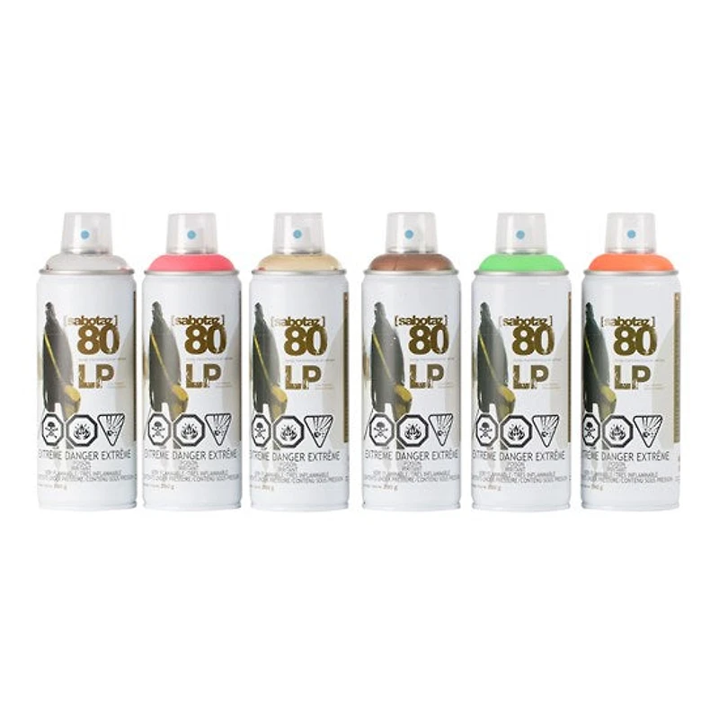 La peinture en aérosol LP (basse pression) Sabotaz 80 est offerte en fini mat ou métallique et offre un vaste choix de couleurs. La peinture en aérosol peut être utilisée à l’intérieur ou à l’extérieur et s'applique sur plusieurs supports. Vendue en exclusivité au Canada chez DeSerres, c’est un produit à découvrir ! • Nouvelle formule• Adhérence amélioréeInitialement destinée à l’univers des graffiteurs, Sabotaz 80 s'adapte à de nombreux usages et s’applique très facilement sur une multitude de supports : plastique, métal, bois, cuir, textile et plus encore. Étonnante, la peinture en aérosol Sabotaz peut être utilisée pour réaliser des projets créatifs. Un produit de qualité qui offre un grand pouvoir couvrant en une seule couche. Spécifications :• La peinture est sèche au toucher 10 minutes suivant l’application• Utiliser à l’extérieur ou dans un espace bien ventilé• Protéger votre visage avec un masque• Tenir hors de portée des enfants• Produit inflammable• Secouer vivement l’aérosol avant son utilisation • Peindre en maintenant l’aérosol en position verticaleUn détaillant responsableCompte tenu que le contenu en aérosol des produits Sabotaz est nocif pour la santé, et afin d’éviter des situations dangereuses, la direction de DeSerres juge qu'il est de sa responsabilité de réserver la vente de ces produits au plus de 18 ans. Une carte d’identification avec photo à l’appui pourrait être demandée.