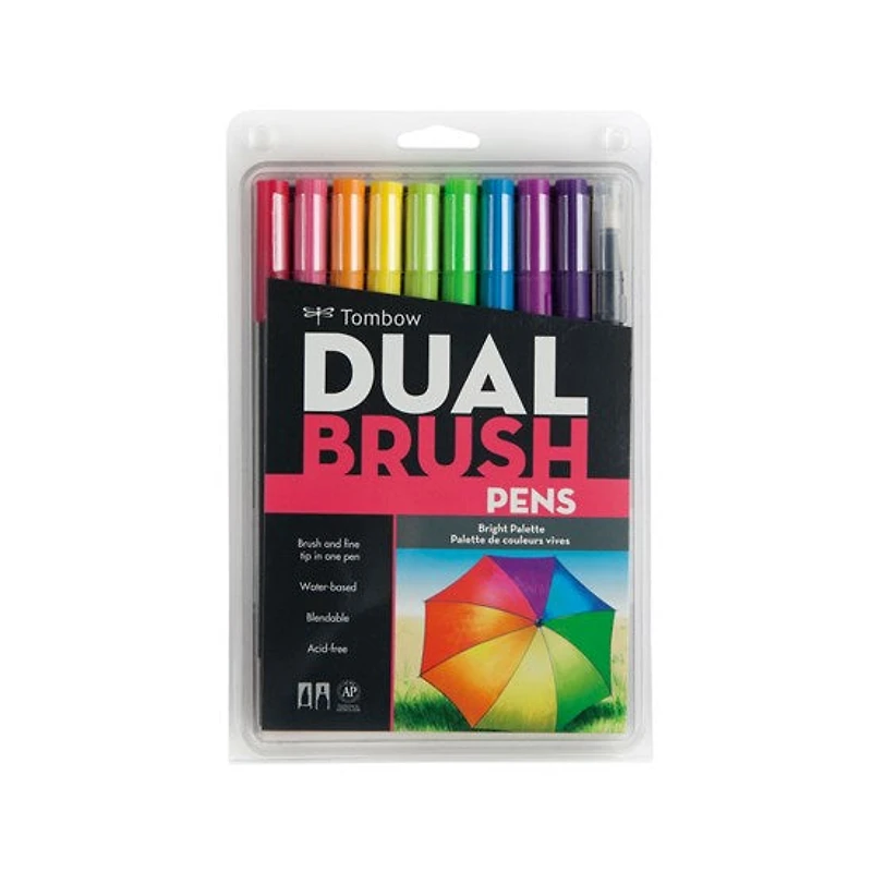 Les feutres-pinceaux à double pointe de Tombow possèdent une pointe souple en nylon pour réaliser des traits vivants, moyens ou gros, et une pointe fine pour tirer des traits légers, lisses et détaillés, des lignes droites, ou pour pratiquer de la calligraphie. L’encre à base d’eau est miscible, inodore, sans acide, non toxique et ne bave pas. Un instrument à la pointe de sa technologie, pour les travaux de dessin et de beaux-arts. Comprend 10 feutres-pinceaux aux couleurs vives