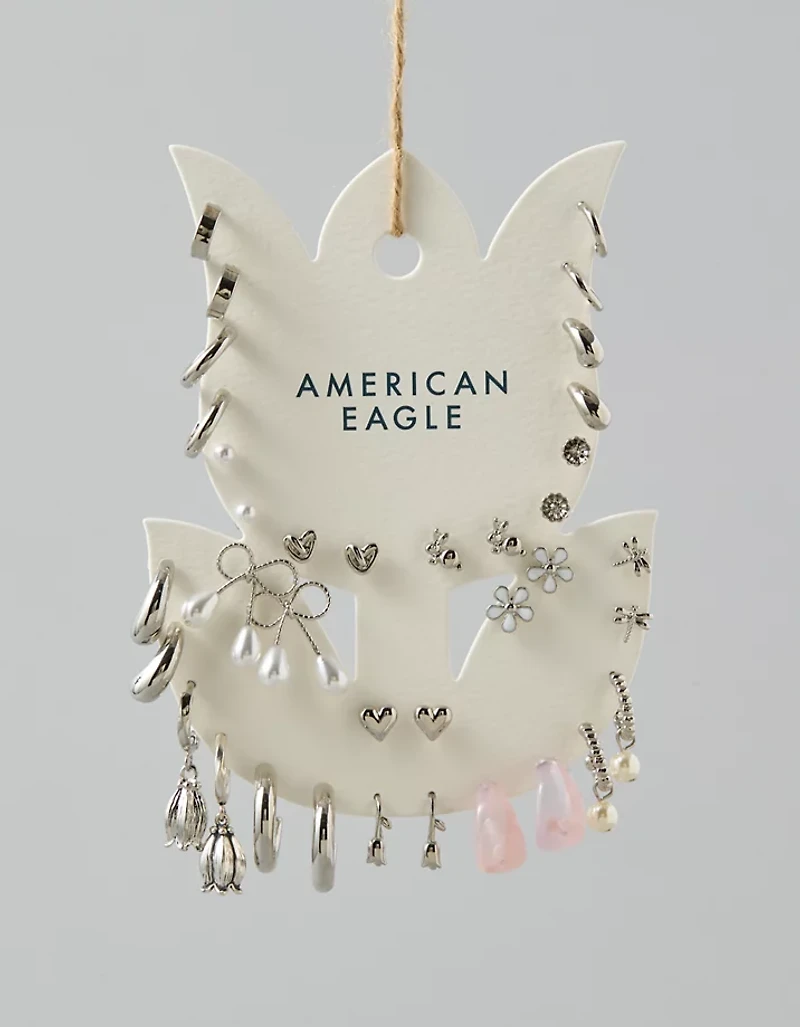Mélange, assortis, superpose et empile cet emballage de 18 paires de boucles d’oreille au fini argenté.