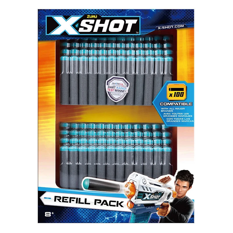 Ne ratez jamais l'action grâce aux 100 fléchettes en mousse pratiques de Zuru! Les fléchettes X-Shot sont aussi compatibles avec la plupart des grandes marques.