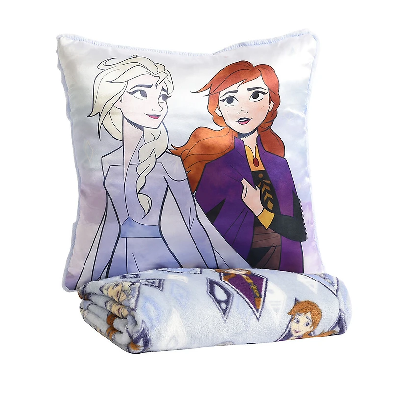 Ensemble de jeté et coussin 2 pièces de la Reine des neiges de Disney