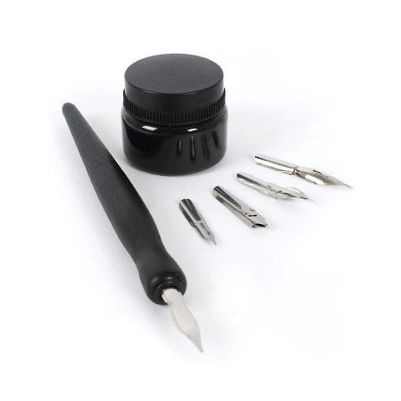 Cet ensemble est idéal pour les dessins de manga à l’encre! Ensemble complet comprenant une bouteille d'encre de Chine, 5 plumes différentes et 1 porte-plume. À utiliser avec papier bristol lisse et carton d'illustrations