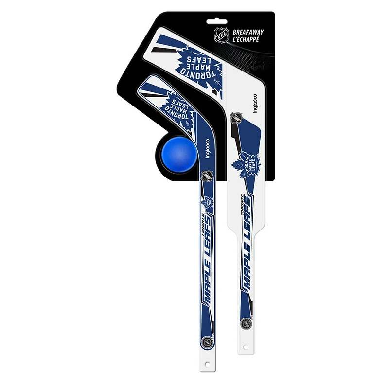 Ensemble d'échappée de la LNH. Comprend un (1) mini bâton de joueur en plastique de 18 po, un (1) mini bâton de gardien de but en plastique de 20 po et une (1) balle en mousse - C'est parti !