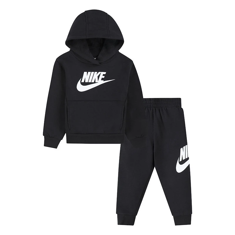 Chemise en polaire doux et extensible avec capuche standard, poche kangourou et taille et poignets côtelés. Associé à un pantalon en polaire confortable avec taille et poignets élastiques pour un confort quotidien. Fini avec les logos Nike Futura assortis.