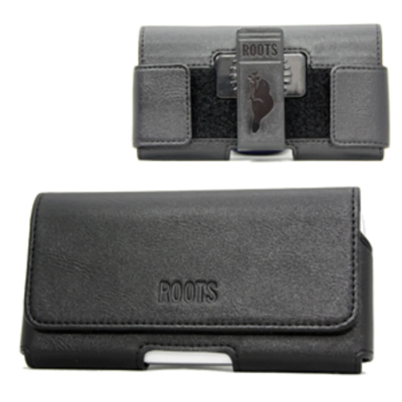 Étui horizontal Roots en cuir avec Velcro ajustable sur les côtés conçu pour les grands téléphones