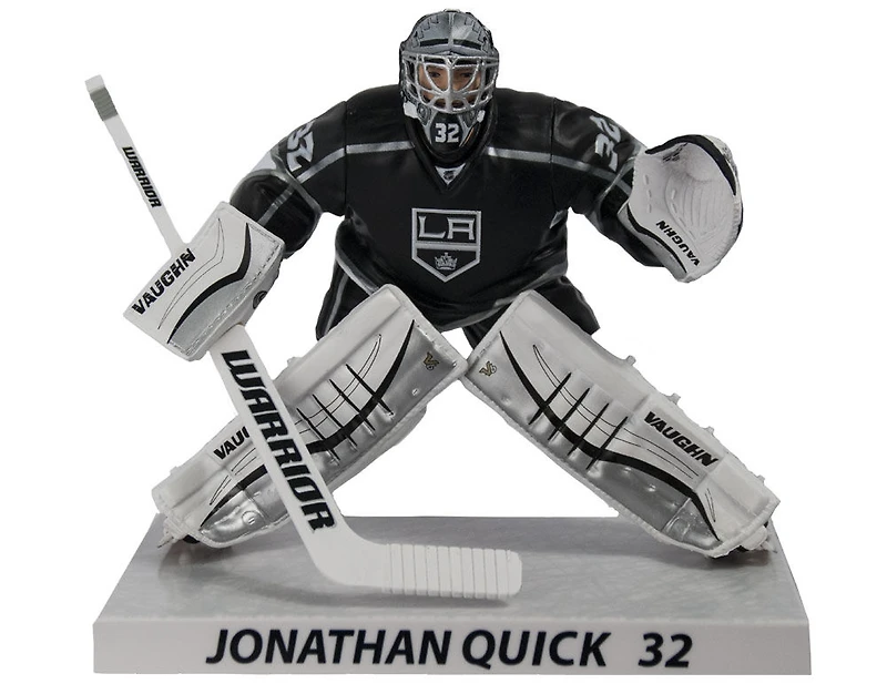 Figurine NHL Jonathan Quick de 6 pouces en PVC de luxe. Comprend une figurine, une plaque et un bâton de hockey . La plaque a une surface de glace détaillée et le nom du joueur et le numéro sont en vedette à l'avant du stand . 16 figurines a collectionner