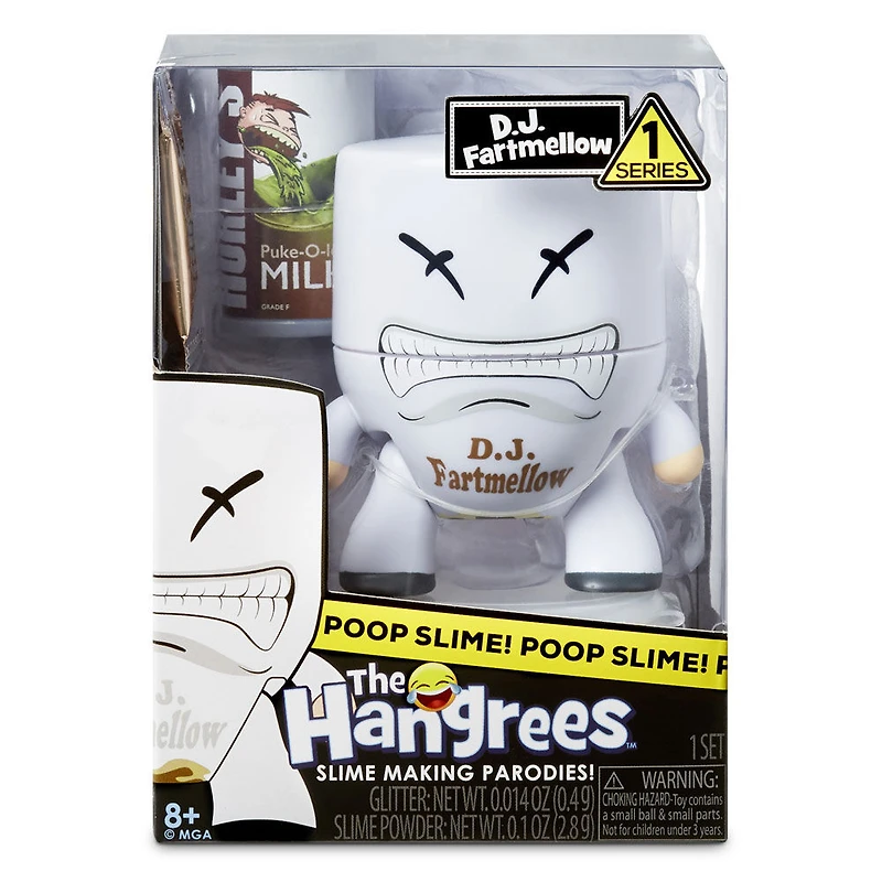 Bienvenue à l'univers malsain de The HangreesMC ! Ces figurines Parodie scandaleuses de culture pop à collectionner ont faim. DONNEZ-LEUR leurs aliments, boissons et goûters Parodie préférés. Puis, AGITEZ-LES pour qu'elles fassent diverses CROTTES mystérieuses en gelée !