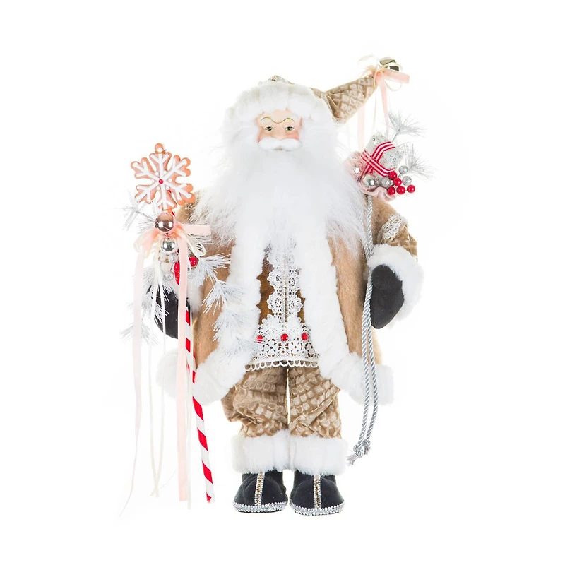 Figurine Père Noël suspendue en tissu crème et blanc avec strass et cadeaux