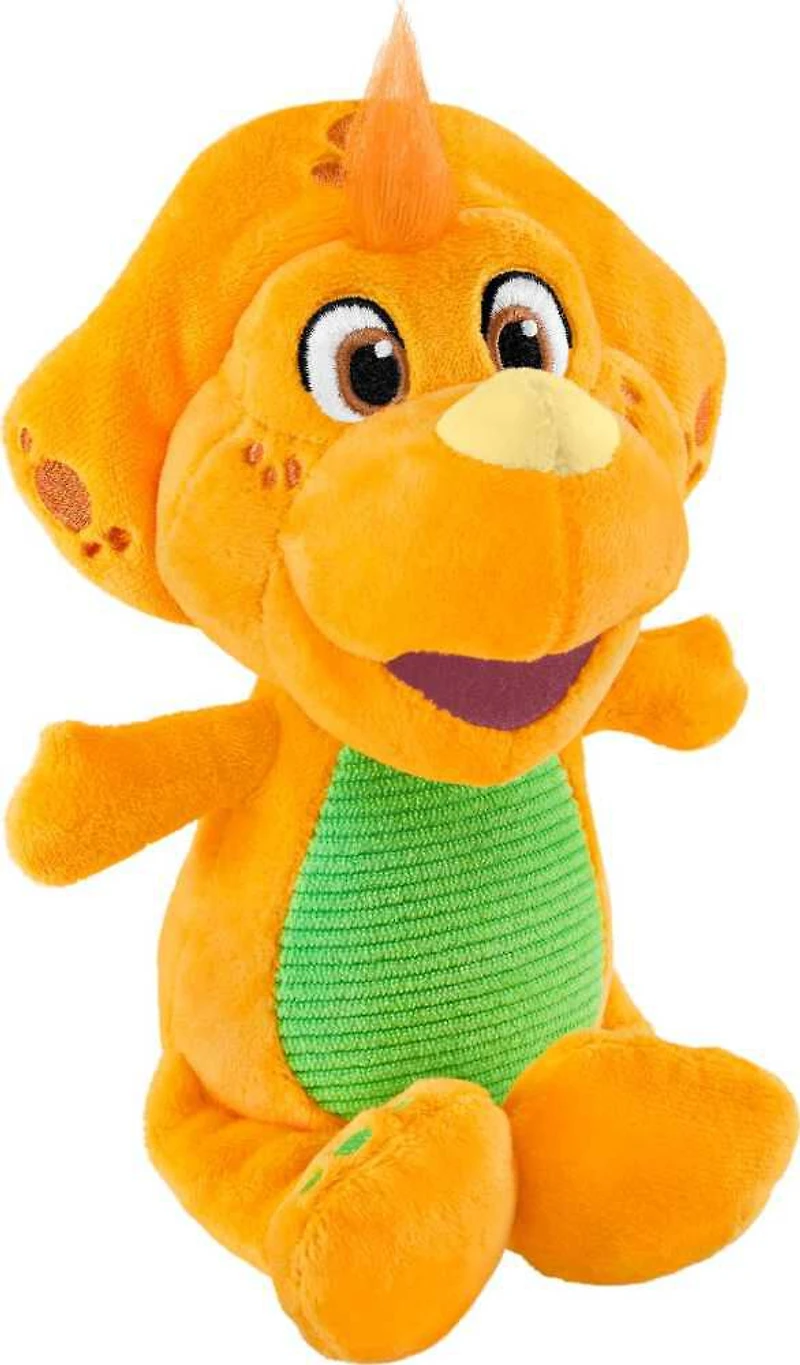 Les enfants peuvent câliner et jouer, à la maison ou pendant les déplacements, avec cette peluche de 16,51 cm (6,5 po) stylisée comme le personnage Billy le Dino de l'émission Le monde de Barney (Barney's World)