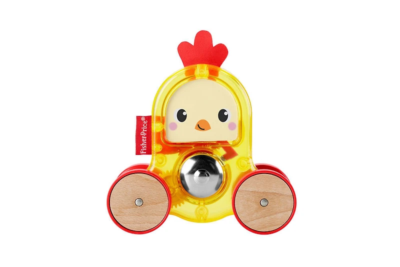 Le Coq Balade Surprise de Fisher-Price est de taille idéale pour permettre à bébé de le saisir et de le pousser pour le jeu assis ou à 4 pattes. Au fur et à mesure que le véhicule roule, le dos transparent du Coq permet à bébé de voir les engrenages tourner pendant que la cloche en métal véritable sonne. Lorsqu'il est prêt à bouger, bébé peut suivre son ami pour un jeu captivant de poursuite à 4 pattes! Pour apprendre en s'amusant Motricité globale: La cloche en métal sonne pendant que le Coq roule, encourageant bébé à poursuivre le véhicule, ce qui favorise le développement de la motricité globale. Capacités sensorielles: La variété de couleurs, de textures et de sons stimule les sens en développement de la vue, du toucher et de l'ouïe de bébé. Curiosité et émerveillement: Bébé est initié à tout le plaisir de la relation de cause à effet lorsqu'il découvre comment faire sonner la cloche en faisant rouler le véhicule.
