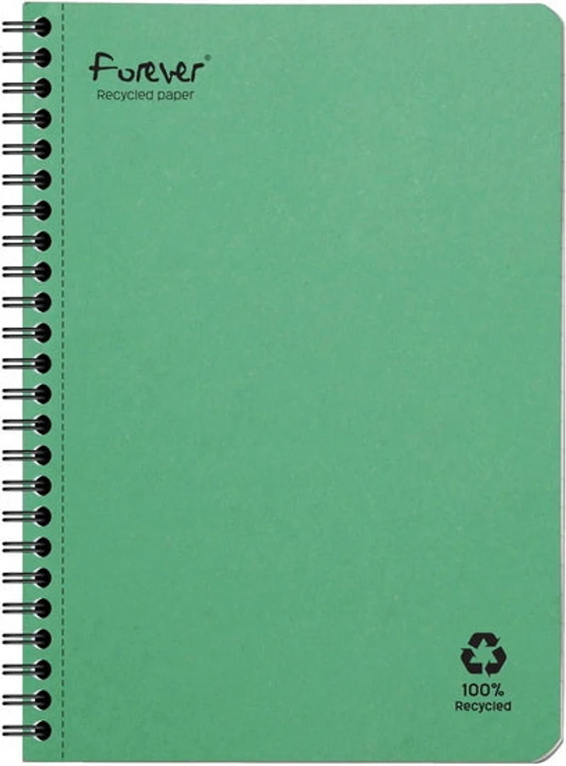 Ce carnet A5 Forever respectueux de l'environnement est fabriqué à partir de papier recyclé à 100 % (couverture et papier). La reliure à spirale permet au carnet de rester à plat pour une utilisation facile et les pages sont lignées fines de 8 mm pour une prise de notes soignée. Ce lot contient cinq carnets A5 avec des couvertures en carton recyclé avec une finition teintée en profondeur.