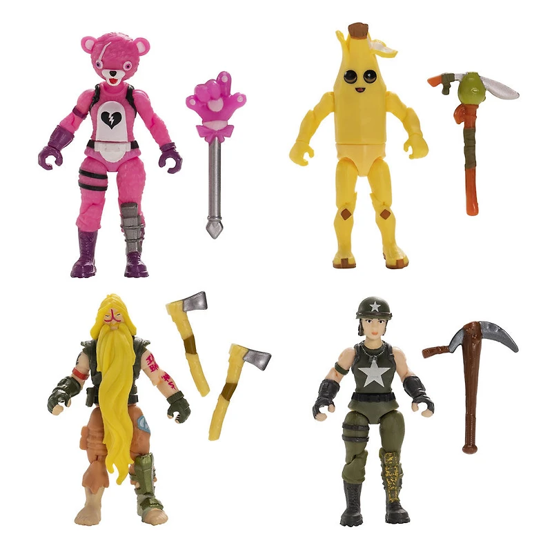 Prépare-toi et rejoins le combat avec le paquet de 4 figurines de la Section Micro. Cet ensemble de figurines Fortnite est basé sur les styles populaires de Jonesy du Bunker, Artificière, Experte des câlins et Banane. Chaque figurine articulée de 6,3 cm comprend une arme unique ainsi qu'un outil de collecte ou un accessoire de dos. Associe-les à d'autres figurines 6,3 cm de Fortnite Micro Section et rejoins la Battle Royale. Sous licence officielle d'Epic Games.