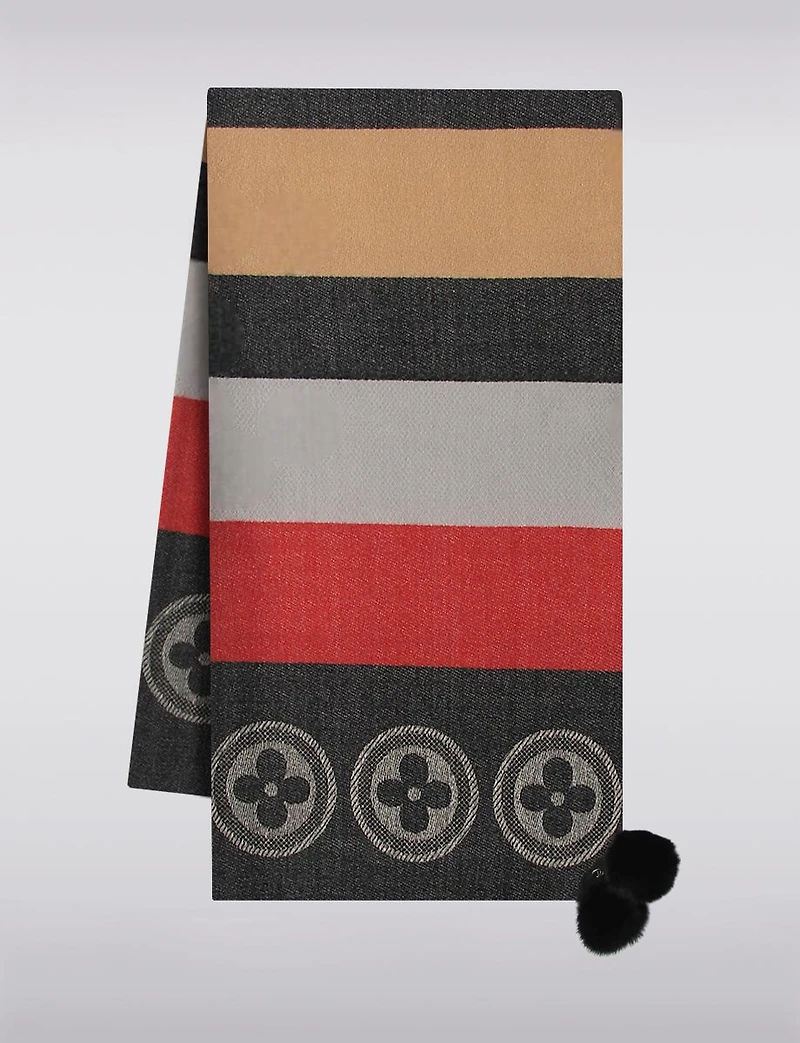 Foulard rayé, pompon faux fourrure amovible, design color-block, tricot léger. Éclat Noël accessoire rehausse tenues. Commandez maintenant.
