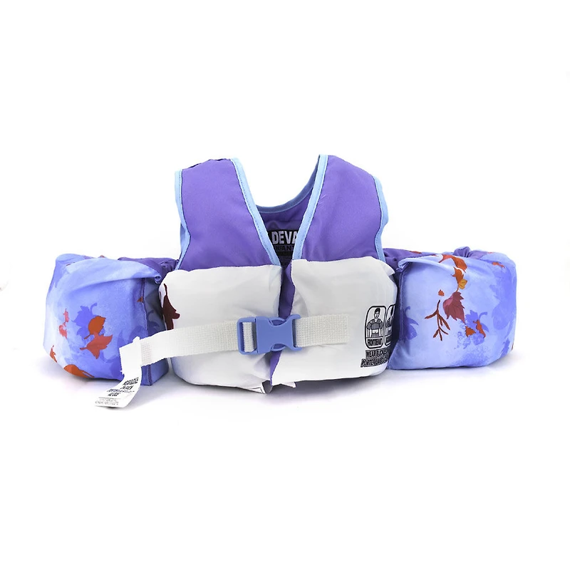 empêche la veste de glisser et l'enfant de la retirer sans aide. Convient aux enfants de 30 à 50 lb (de 14 à 23 kg) et comprend une courroie réglable à la poitrine et une boucle de sécurité à dégagement rapide pour la maintenir en place. Sa conception en polyester durable à plusieurs panneaux offre un confort inégalé et ne s'use pas comme le nylon. Ce produit n'est pas une veste de sauvetage; un adulte compétent doit superviser l'enfant en tout temps lorsqu'il se trouve dans la piscine.
