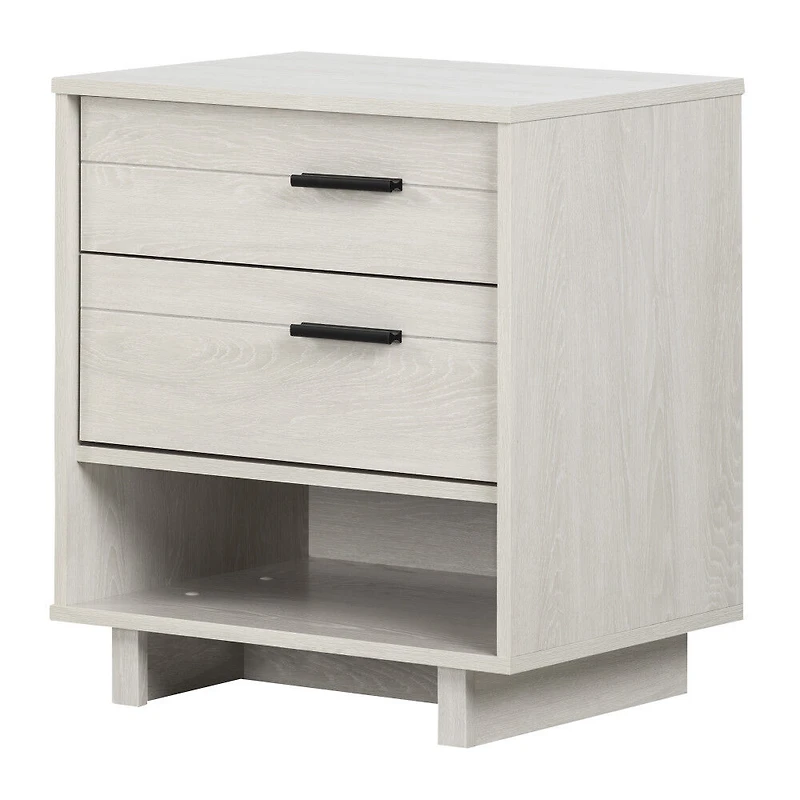 RANGEMENT PRATIQUE : Gardez vos livres, lunettes et objets personnels organisés et hors de vue à votre chevet avec cette table de nuit élégante et pratique. S'AGENCE PARTOUT : La table de nuit présente un design moderne et des poignées métalliques élégantes, avec des lignes épurées qui se marient avec n'importe quel décor ou meuble de chambre à coucher ou de salon. UN MEUBLE UTILE : La tablette coulissante, le tiroir profond et le casier de rangement ouvert sont pratiques pour ranger tout ce dont vous avez besoin! De plus, un serre-câble permet d'organiser vos fils, sans que ceux-ci s'emmêlent. Meuble polyvalent Vous aimerez cette nouvelle table de nuit - une pièce moderne et pratique de notre collection Fynn - pour sa fonctionnalité et ses espaces de rangement ! Le tiroir du haut se démarque par sa station de recharge pour vos téléphones, tablettes et autres appareils électroniques. Un deux en un ! Rangement pratique et moderne Dotée d'un espace de rangement ouvert facile d'accès, idéal pour les lectures de chevet, la table de nuit comprend également une tablette coulissante avec serre-câble pour organiser vos fils. Un second tiroir sur coulisses en métal permet de ranger des vêtements ou des accessoires. Les tiroirs sont également munis de fines poignées métalliques durables.