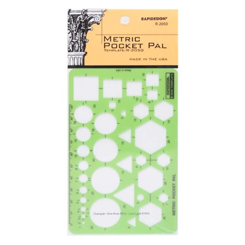 Gabarit d’écriture fait en plastique de butyrate extra-résistant. Spécialement formulé pour éliminer les craquelures et la faiblesse. Contient les formes et tailles les plus utilisés comme : cercles, hexagones, triangles et carrés. Échelle de 100 mm pratique. Taille : 5-1/2 x 3-1/2 pouces