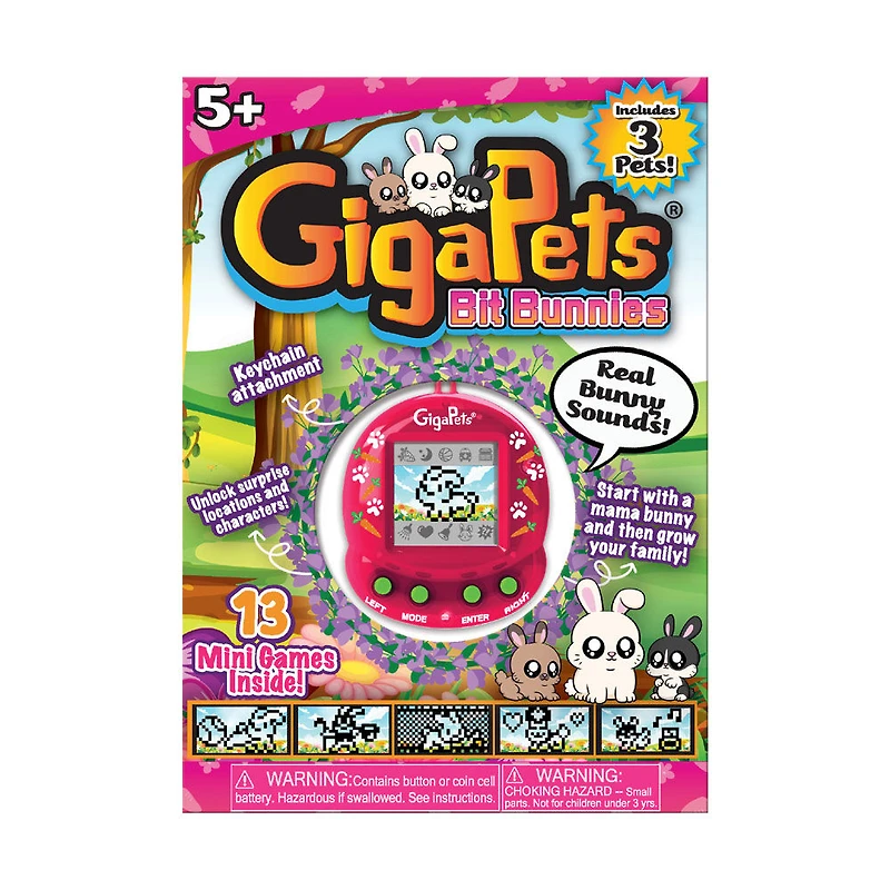 ÉLEVEZ UNE FAMILLE DE LAPINS - Dans les Bit Bunnies de GigaPets, vousferez vos premiers pas avec un bébé lapin qui, avec beaucoup d'amour et d'attention, deviendra un lapin adulte. A partir de là, votre lapin peut devenir une maman et donner naissance à deux autres lapins, dont on peut s'occuper dans le même jeu! 3 LAPINS UNIQUES - Chacun des 3 lapins présente une apparence, une personnalité, des animations et des jeux qui lui sont propres! 7 EVOLUTIONS - Chaque lapin présente une évolution de bébé et d'adulte et il y a 1 évolution/personnage surprise à découvrir! 13 MINIJEUX - Chacun des lapins est la vedette de ses propres mini jeux auxquels vous pouvez jouer. Les jeux se débloquent au fil de votre évolution et certains jeux ne sont accessibles qu'en entrant dans certaines sections cachées du monde des lapins. S'EN OCCUPER ET EN PRENDRE SOIN - Pour les plus petits, ce jeu leur apprendra ce que signifie réellement prendre soin de quelque chose : peut-être un Giga Pet avant un vrai animal de compagnie? Patience et plaisir sont absolument de rigueur.
