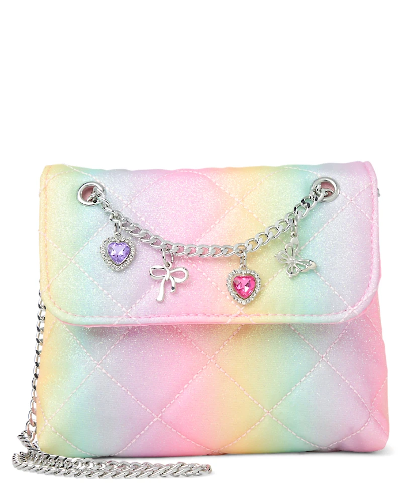Girls Rainbow Glitter Charm Bag