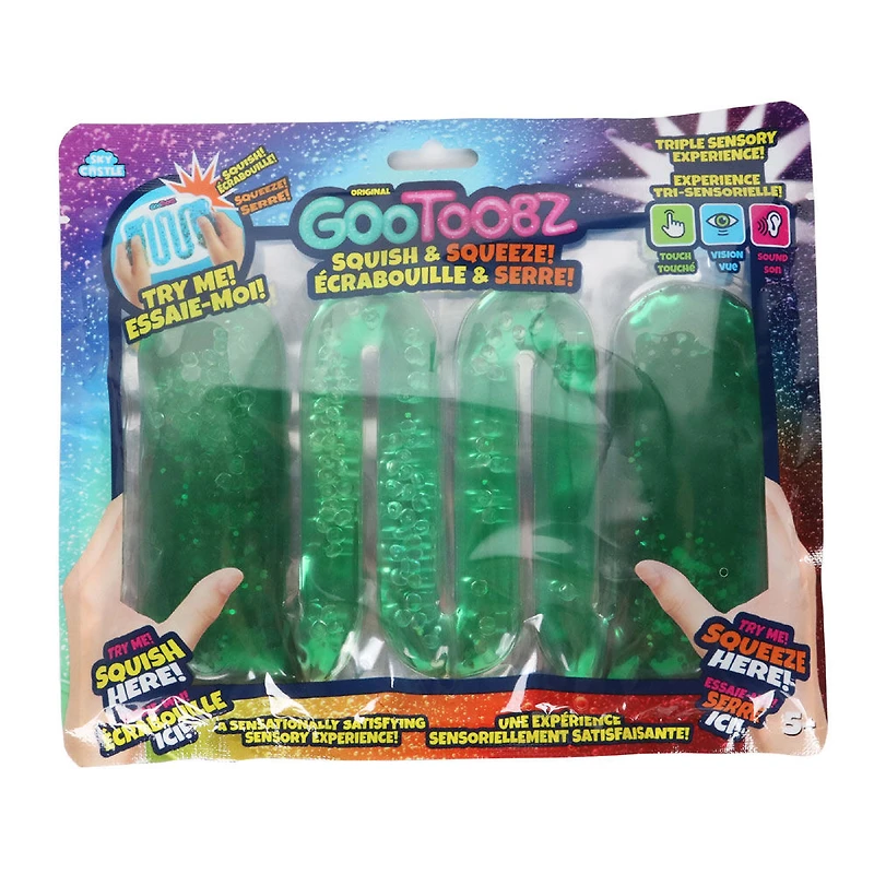 Ecrase et presse! Puis regarde le gel gluant se déplacer et jaillir à travers le toobz créant une expérience sensorielle exaltante et satisfaisante!