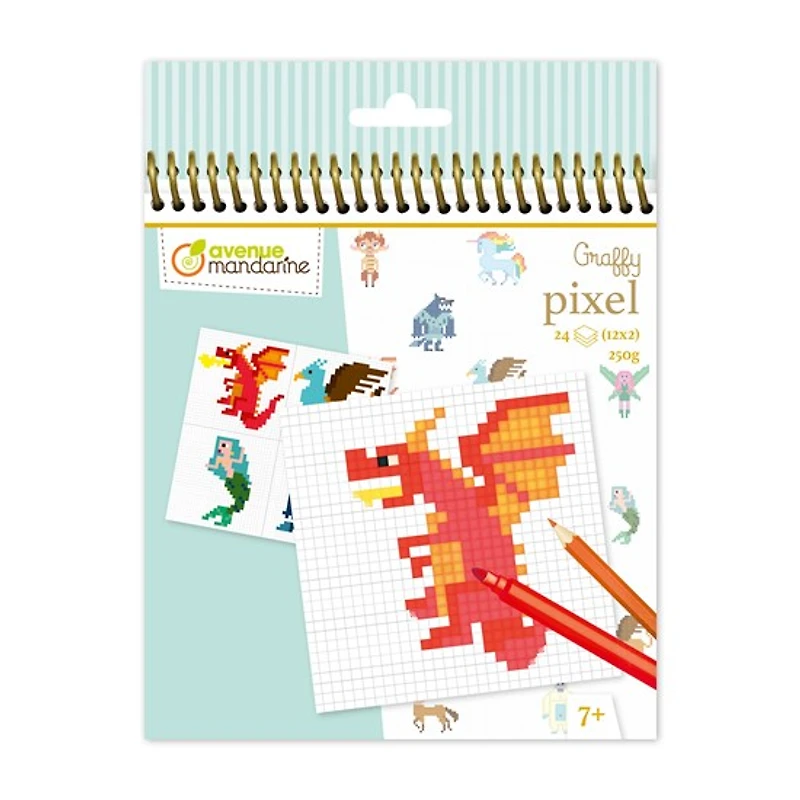 Pixel Art, une activité très appréciée des enfants ! Ce bloc propose 24 illustrations colorées à reproduire sur des feuilles quadrillées. Avec des crayons de couleur ou des feutres, l'enfant suit les cases pour réaliser son dessin. Un excellent moyen de développer la créativité et la concentration des enfants de 7 ans et plus.Spécifications : papier à dessin 250 g/m², 12 modèles répétés 2 fois, 24 feuilles blanches, certifié PEFC pour la gestion durable des forêts, conforme aux normes CE
