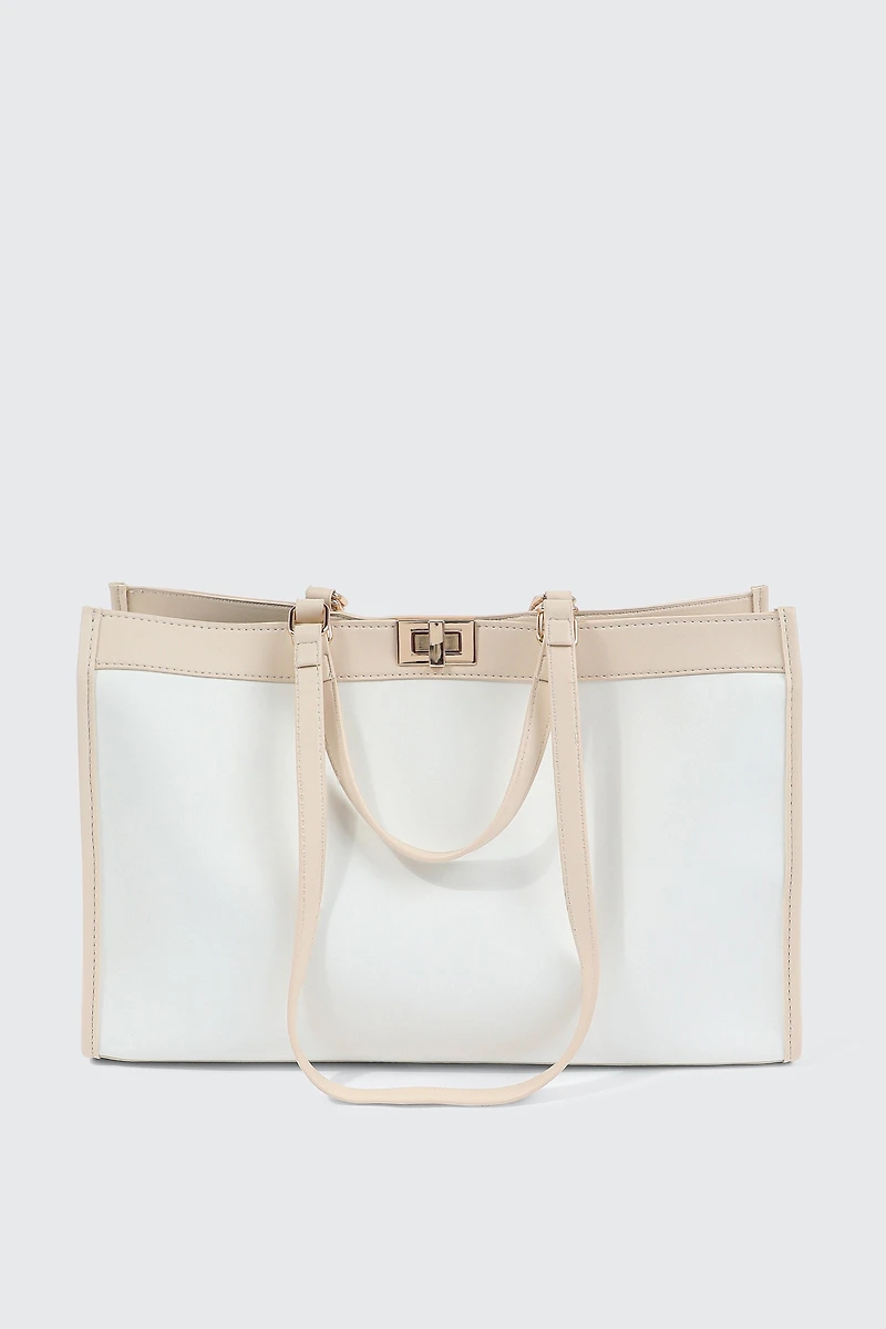 Un grand sac fourre-tout structuré avec loquet tournant et doubles anses — parfait pour tes tenues décontractées.