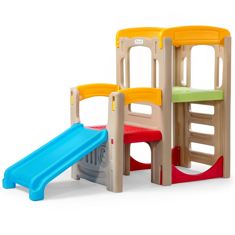 Glissez vers le bas, grimpez et rampez ! Encouragez le jeu actif dans ce centre de jeu de style véhicule tout-terrain. Combinez le jeu traditionnel d'escalade et de glissade avec un thème de véhicule tout-terrain où plusieurs enfants peuvent jouer en coopération.
