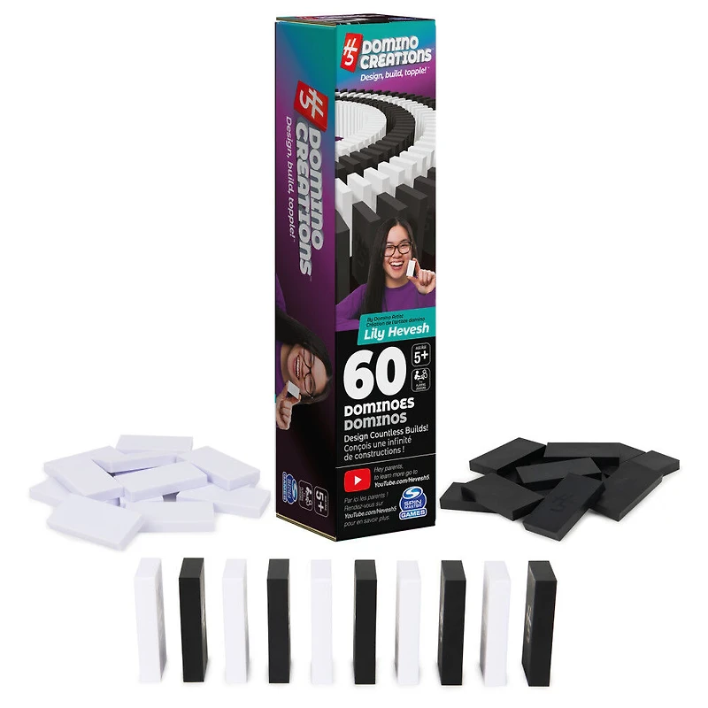 H5 Domino Creations, Coffret de 60 pièces noires/blanches par Lily Hevesh, artiste domino sur Youtube