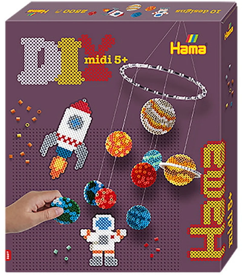 Hama Boîte cadeau Espace. Env. 2.500 perles, 2 plaques: petite ronde, grande carrée et accessoires.