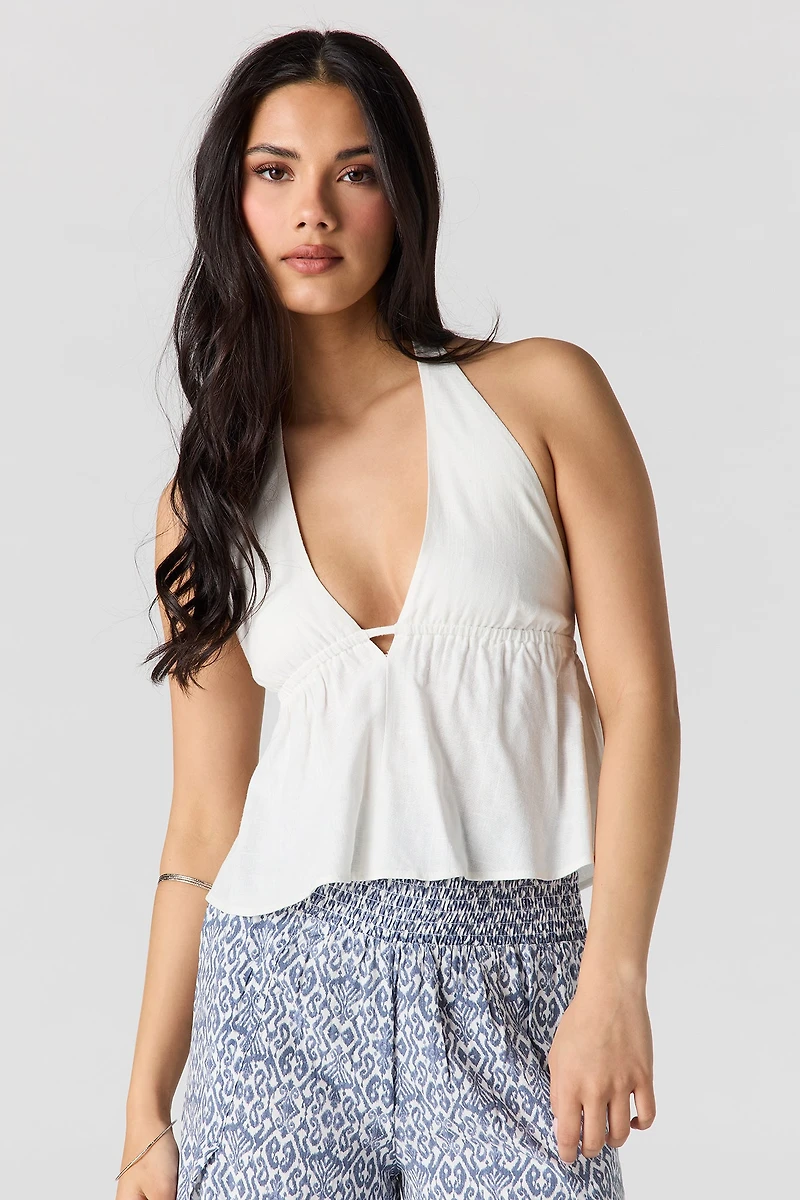 Haut bain-de-soleil en mélange de lin