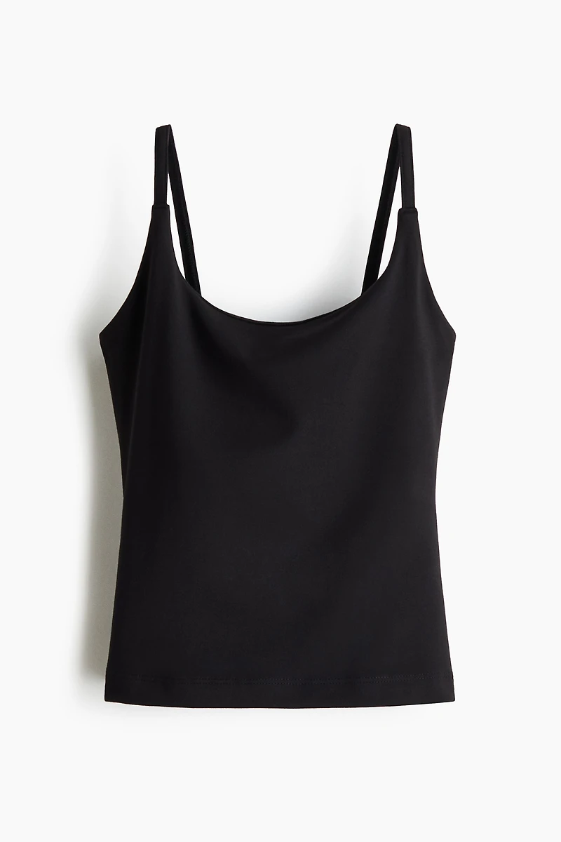 T-shirt de sport en textile technique bénéficiant de la technologie SoftMove🅪 qui offre le summum de la douceur et du confort. Coupe près du corps avec encolure carrée, bretelles fines et ouverture surmontée d'un détail torsadé dans le dos. Soutien-gorge de sport intégré avec élastique au bas.