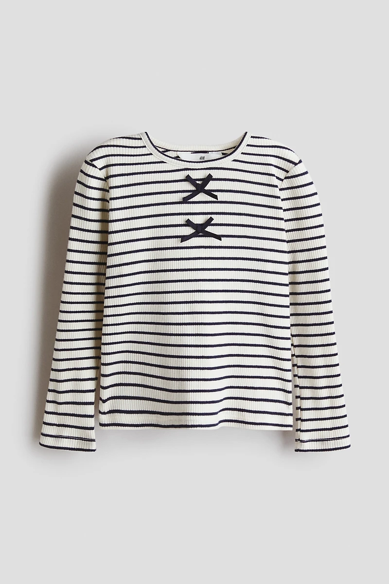 Haut en jersey de coton doux et côtelé. Modèle à encolure ronde à bord picots, manches longues et bas droit.
