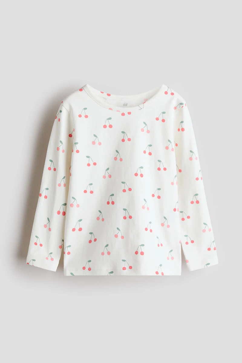 Haut en jersey de coton imprimé. Modèle à encolure ronde, manches longues et bas droit.