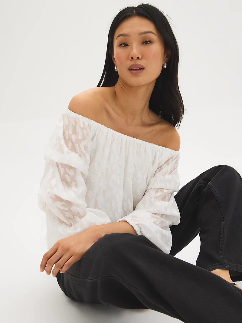 Pièce tendance, ce haut imprimé à manches bouffantes et à volants apporte une touche d'originalité à votre look. Son joli imprimé et son décolleté à épaules dénudées en font un modèle parfait pour un week-end entre amis, un brunch ou une soirée décontractée. Les manches superposées et le tissu délicat ajoutent du mouvement et du charme, en faisant un incontournable pour un look à la fois féminin et plein de fantaisie.