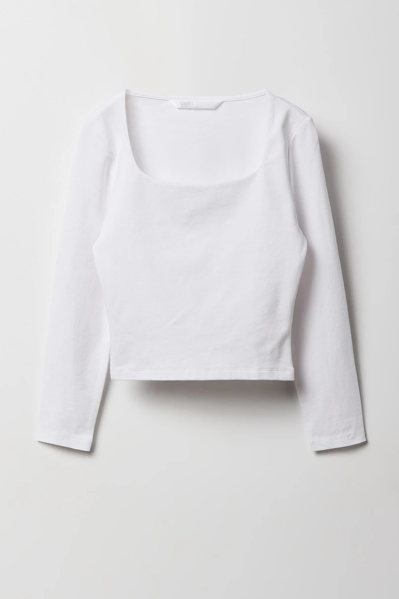 Haut profilé à manches longues et encolure carrée pour fille