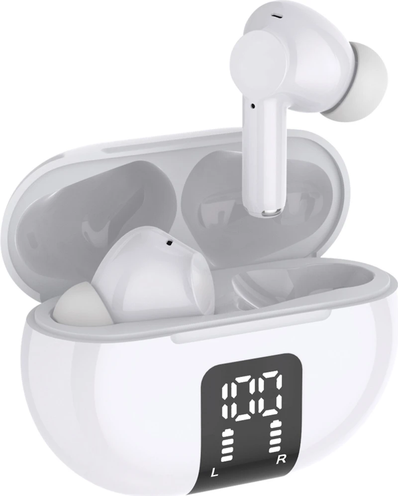 Experience unparalled sound with the Helix True wireless earbuds with digital readout case. With a 20 hour runtime, you can enjoy non-stop music, podcasts, and calls without the constant need to recharge. Immerse yourself in HD audio with crystal-clear sound and deep base. Navigate your audio effortlessly with the capacitive touchsense technology with a simple tap. Keep track of your power levels with the digital readout charging case. Perfect for listening to music, podcasts, phone calls, and everyday use.