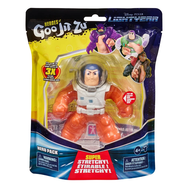 Disney Pixar Lightyear et les héros de Goo Jit Zu ont combiné leurs forces pour créer la gamme ultime des super-héros Lightyear les plus extensibles, les plus gluants et les plus spongieux de tous les temps ! C'est exact! Certains de vos personnages Lightyear préférés ont rejoint les héros de Goo Jit Zu et ont pris leurs pouvoirs spongieux, extensibles et gluants ! Aventurez-vous à l'infini et au-delà avec Buzz Lightyear XL-15 d'une manière jamais vue auparavant ! Écrasez, serrez et étirez son incroyable corps rempli de Goo alors qu'il aide à protéger l'univers ! Buzz Lightyear XL-15 est super spongieux ! Il a un remplissage de perles d'eau rouge unique. Pressez-le et écrasez-le pour voir son remplissage de perles d'eau se déplacer à l'intérieur de son corps ! Maintenant, vous pouvez jouer avec votre héros Buzz Lightyear XL-15 d'une nouvelle manière gluante sans aucun gâchis ! Serrez, écrasez et étirez ses bras, ses jambes et son corps ! Son incroyable corps extensible peut s'étirer jusqu'à 3 fois sa taille, puis reprendre sa forme et sa taille d'origine ! Aventurez-vous dans l'infini et au-delà avec toutes les figurines Lightyear Goo Jit Zu et découvrez une nouvelle façon de jouer et de sauver la journée avec ces super jouets à collectionner !