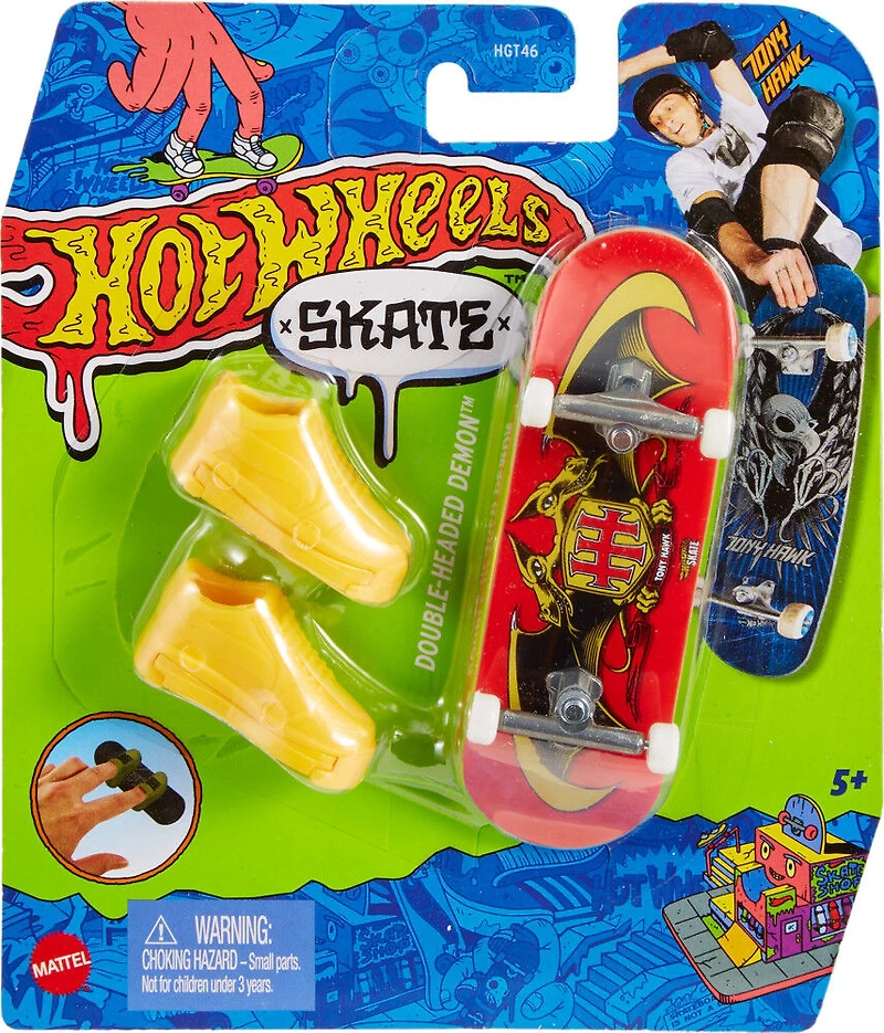 Hot Wheels et la légende du skate, Tony Hawk, se sont associés afin de créer une superbe collection de fingerboards pour réaliser des figures de niveau professionnel. Chaque coffret contient un fingerboard Hot Wheels entièrement monté et une paire de chaussures de skate stylées amovibles, conçues pour que vos doigts restent bien en place sur la planche lorsque vous apprenez à rider et à faire des ollies comme un pro. Une fois que les skateurs en herbe auront pris confiance en eux et auront une meilleure sensation sur la planche, ils pourront retirer les chaussures et utiliser uniquement leurs doigts pour tenter des figures plus difficiles. Chaque planche de skate présente un design unique et tendance, si bien que les enfants auront envie de toutes les collectionner. Toutes vendues séparément. Certains produits peuvent ne pas être commercialisés. Les couleurs et les décorations peuvent varier.