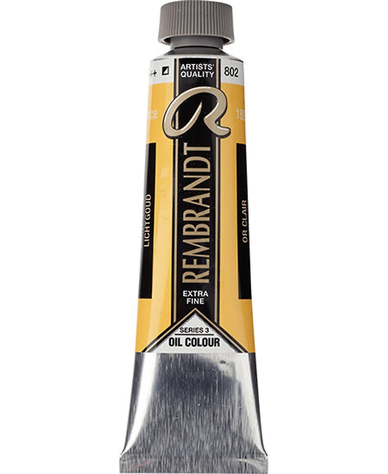 La marque d’huile Rembrandt offre un large choix de couleurs et de nuances brillantes, opaques ou transparentes qui sont miscibles entre elles et sont résistantes à la lumière. Les huiles Rembrandt sont composées de pigments purs finement moulus dans un liant à base d'huile de lin ou de carthame qui produisent des huiles lisses et onctueuses faciles à travailler et durables. La marque d’huile Rembrandt offre également un grand choix de nuances spécialisées. Informations pratiques : Utiliser un vernis pour protéger la toile (il est recommandé de vernir après 6 à 12 mois de séchage selon l’épaisseur de peinture). Les huiles devraient être de la même marque afin d'éviter les problèmes de miscibilité et de séchage. Éviter d’inhaler les particules. Séchage : 3 à 6 jours. Utilisation : technique de glacis, grande toile, etc. Entretien : essence de pétrole inodore, essence de térébenthine. Supports : toile, carton, panneaux de bois, etc. (Les supports doivent être apprêtés pour éviter une absorption trop rapide.) Matériel de base : Support, médium à peindre, peintures à l'huile, pinceaux, essence de térébenthine, palette en bois ou jetable, couteau à peindre.