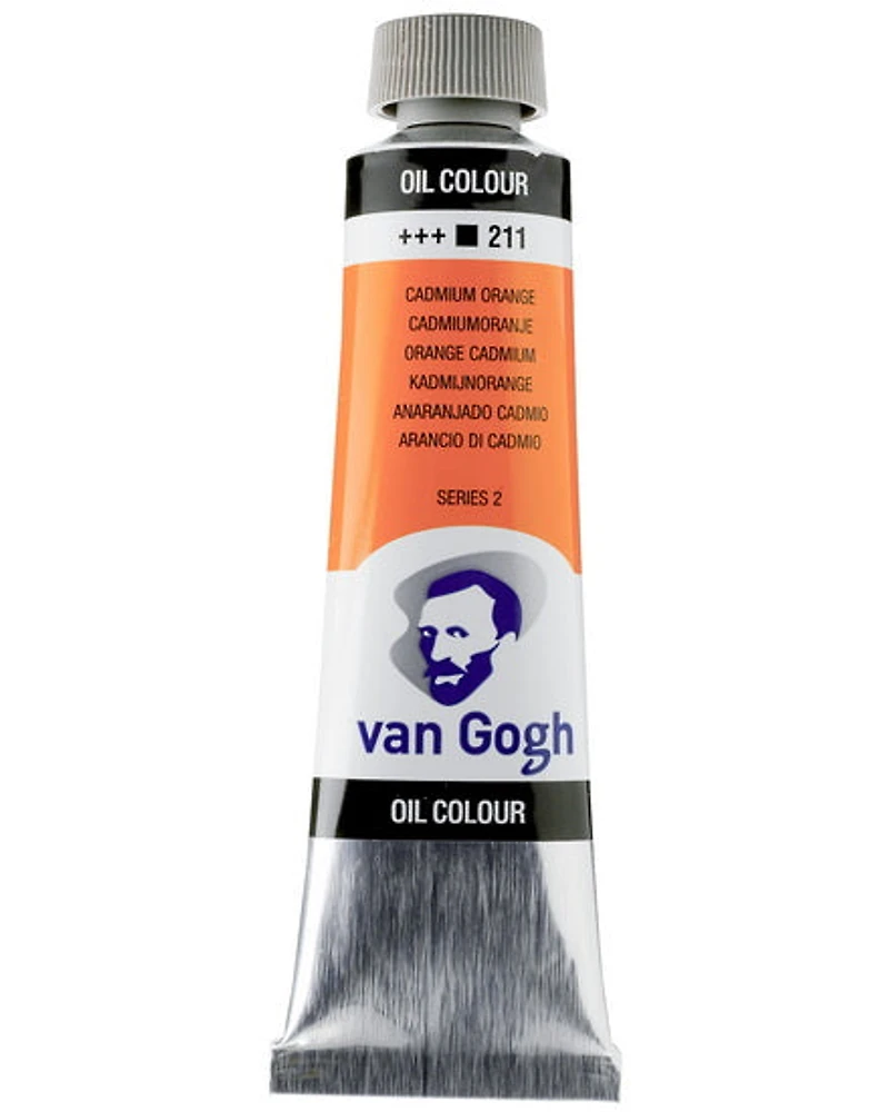 Les couleurs à l'huile Van Gogh répondent aux besoins des débutants. De texture onctueuse et facile à travailler, la gamme offre des couleurs brillantes et résistantes à la lumière.  Les huiles Van Gogh ont la même viscosité et la même brillance et se mélangent facilement entre elles. Elles sont durables et offrent un temps de séchage identique.  Informations pratiques : Diluer avec un solvant. Faible odeur. Les huiles devraient être de la même marque afin d'éviter les problèmes de miscibilité et de séchage. Utiliser un vernis pour protéger la toile (il est recommandé de vernir après 6 à 12 mois de séchage selon l’épaisseur de peinture).  Éviter d’inhaler les particules.  Séchage : 3 à 6 jours. Utilisation : technique de glacis, grande toile, etc. Entretien : eau et savon, essence de pétrole inodore, essence de térébenthine. Supports : toile, carton, panneaux de bois, etc. (Les supports doivent être apprêtés pour éviter une absorption trop rapide.) Matériel de base : Support, médium à peindre, peintures à l'huile, pinceaux, essence de térébenthine, palette en bois ou jetable, couteau à peindre.