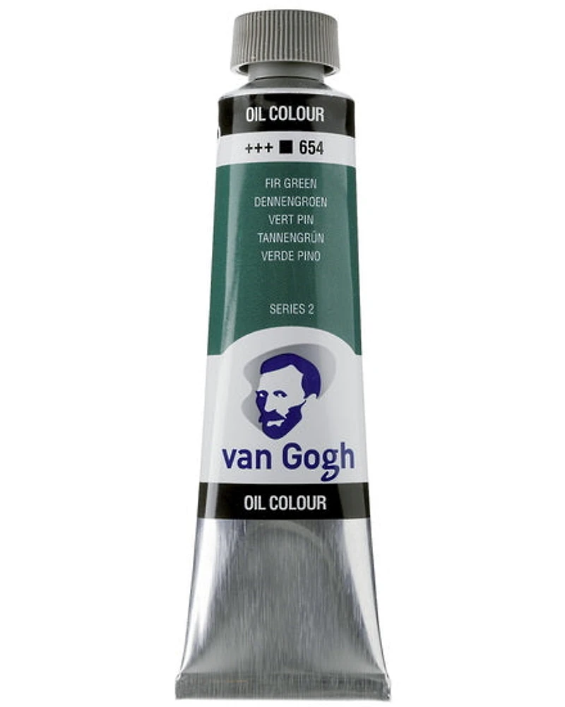 Les couleurs à l'huile Van Gogh répondent aux besoins des débutants. De texture onctueuse et facile à travailler, la gamme offre des couleurs brillantes et résistantes à la lumière.  Les huiles Van Gogh ont la même viscosité et la même brillance et se mélangent facilement entre elles. Elles sont durables et offrent un temps de séchage identique.  Informations pratiques : Diluer avec un solvant. Faible odeur. Les huiles devraient être de la même marque afin d'éviter les problèmes de miscibilité et de séchage. Utiliser un vernis pour protéger la toile (il est recommandé de vernir après 6 à 12 mois de séchage selon l’épaisseur de peinture).  Éviter d’inhaler les particules.  Séchage : 3 à 6 jours. Utilisation : technique de glacis, grande toile, etc. Entretien : eau et savon, essence de pétrole inodore, essence de térébenthine. Supports : toile, carton, panneaux de bois, etc. (Les supports doivent être apprêtés pour éviter une absorption trop rapide.) Matériel de base : Support, médium à peindre, peintures à l'huile, pinceaux, essence de térébenthine, palette en bois ou jetable, couteau à peindre.