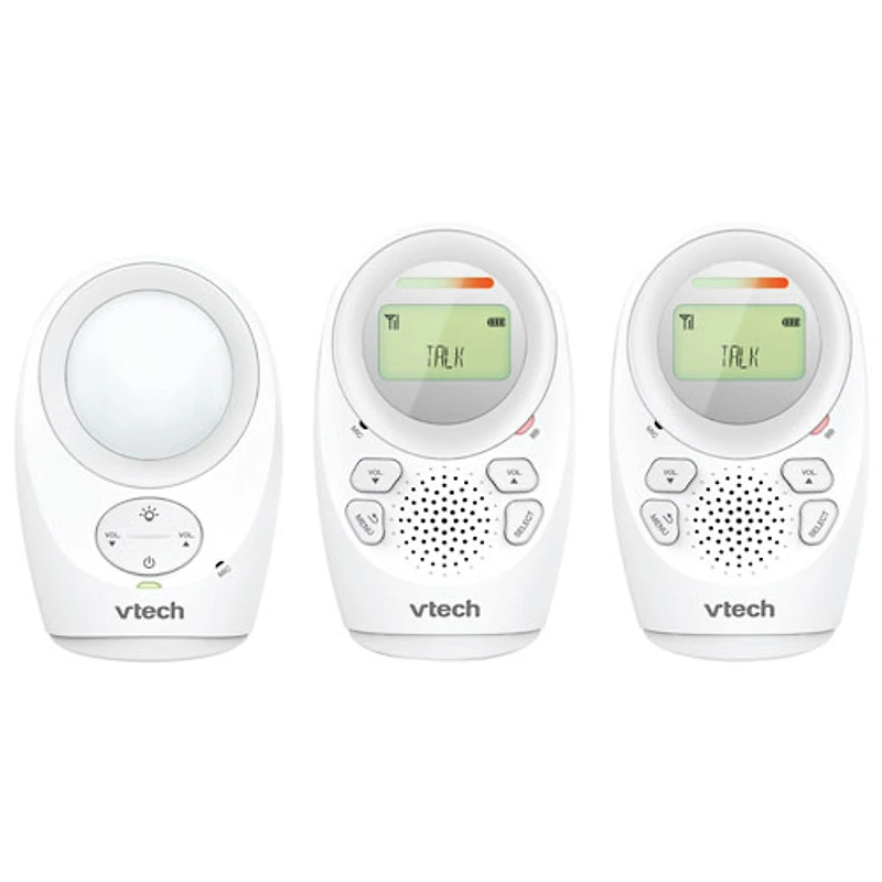 Écoutez ce qui se passe dans la chambre de votre bébé avec cet interphone de surveillance audio de VTech. Avec deux unités pour parents, cet interphone de surveillance permet à plusieurs personnes d'entendre les cris de votre bébé. La technologie numérique DECT 6.0 fournit une transmission claire de la chambre du bébé vers l'unité pour parents, et l'alerte sonore et visuelle à DEL indique le niveau de bruit dans la chambre de votre enfant.