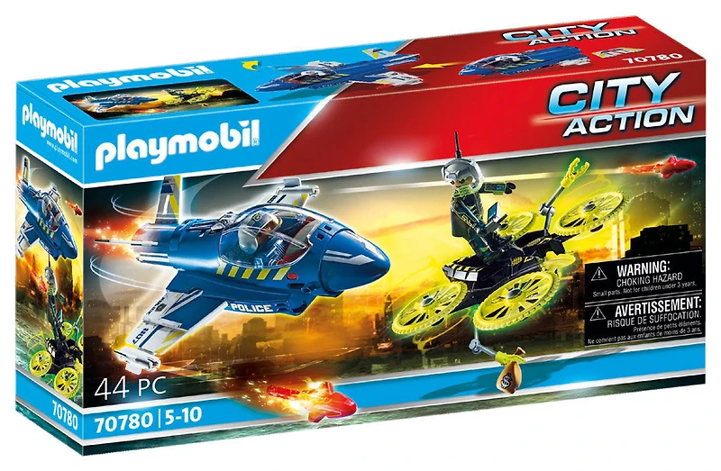 Alerte alerte ! On a besoin de renfort ! Le policier pilote est à bord de son jet ultra-rapide, il prend la chasse du voleur qui s'enfuit sur son drone nouvelle génération, c'est une vraie course vitesse !